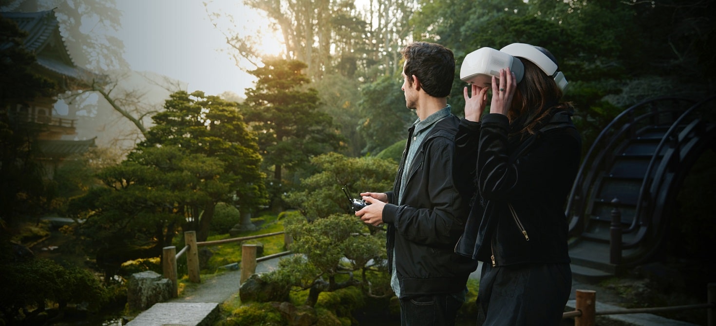 DJI Goggles идеальны для испытания нового интеллектуального режима полета: режим планера (Fixed-Wing). Этот режим позволяет испытать реалистичное чувство полета: беспилотник будет лететь по прямой линии, как планер, сохраняя возможность разворачиваться. В сочетании с возможностью управления дроном движениями головы этот режим подарит вам реалистичное чувство полета. Дополнительная линия траектории обеспечивает безопасность полета в сложных условиях. Кроме того, доступны стандартные интеллектуальные режимы полета:огибание рельефа, ActiveTrack, TapFly и режим штатива (Tripod).